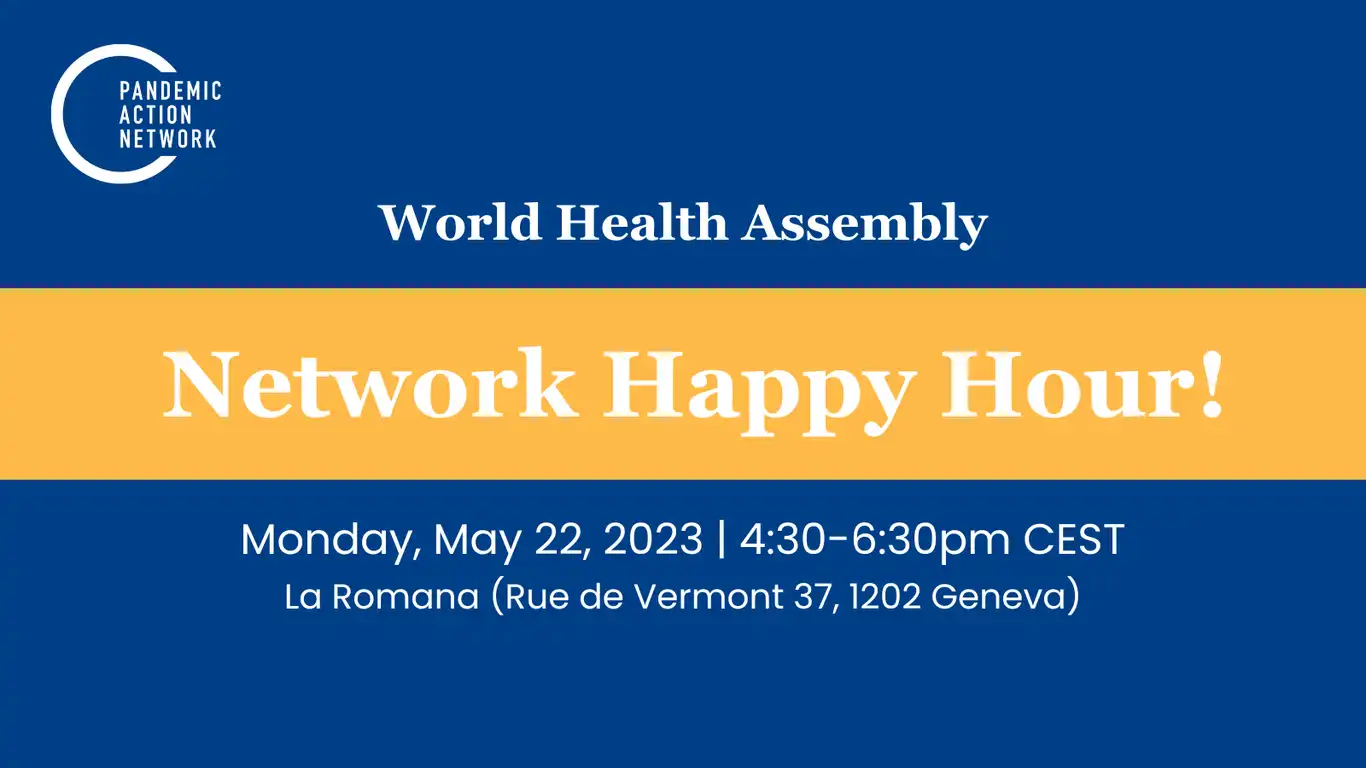 Pandemic Action Network is hosting a happy hour during the upcoming World Health Assembly in Geneva. For those attending, please join us on May 22, from 4:30 pm to 6:30 pm at La Romana (Rue de Vermont 37, 1202 Genève).