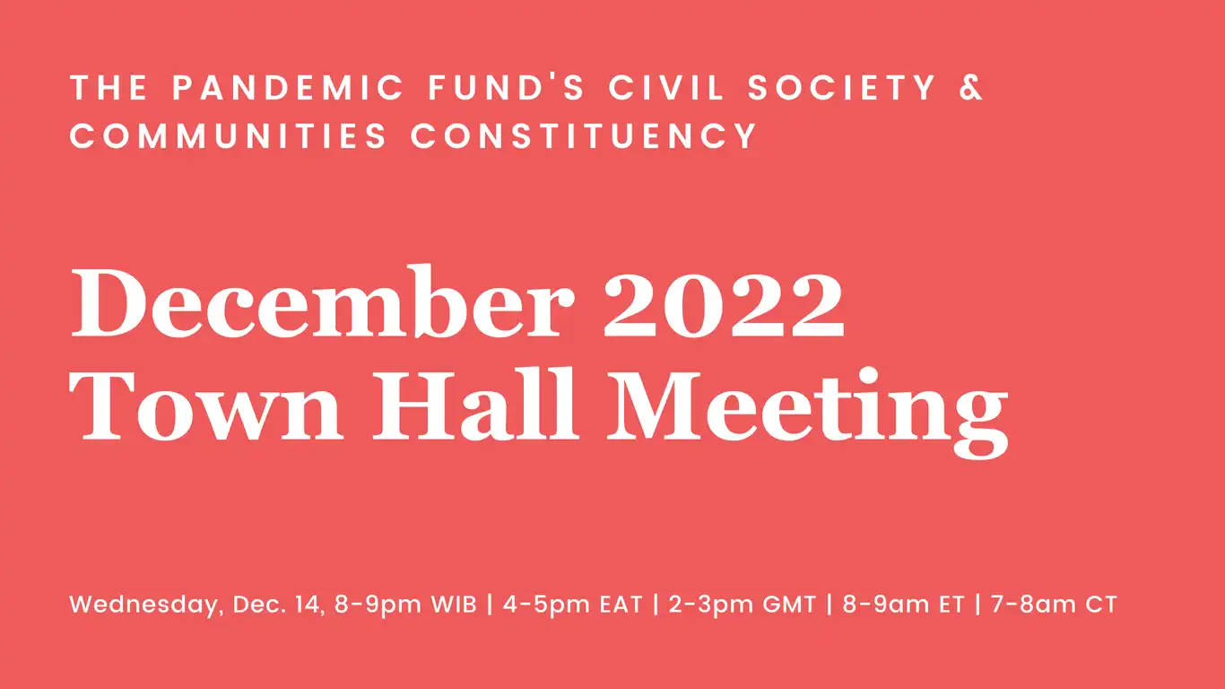 Do not hesitate to share this event with other civil society and community groups! We are looking forward to seeing you there. Your voice and inputs matter to support and shape the positions of the Pandemic Fund’s civil society representatives.